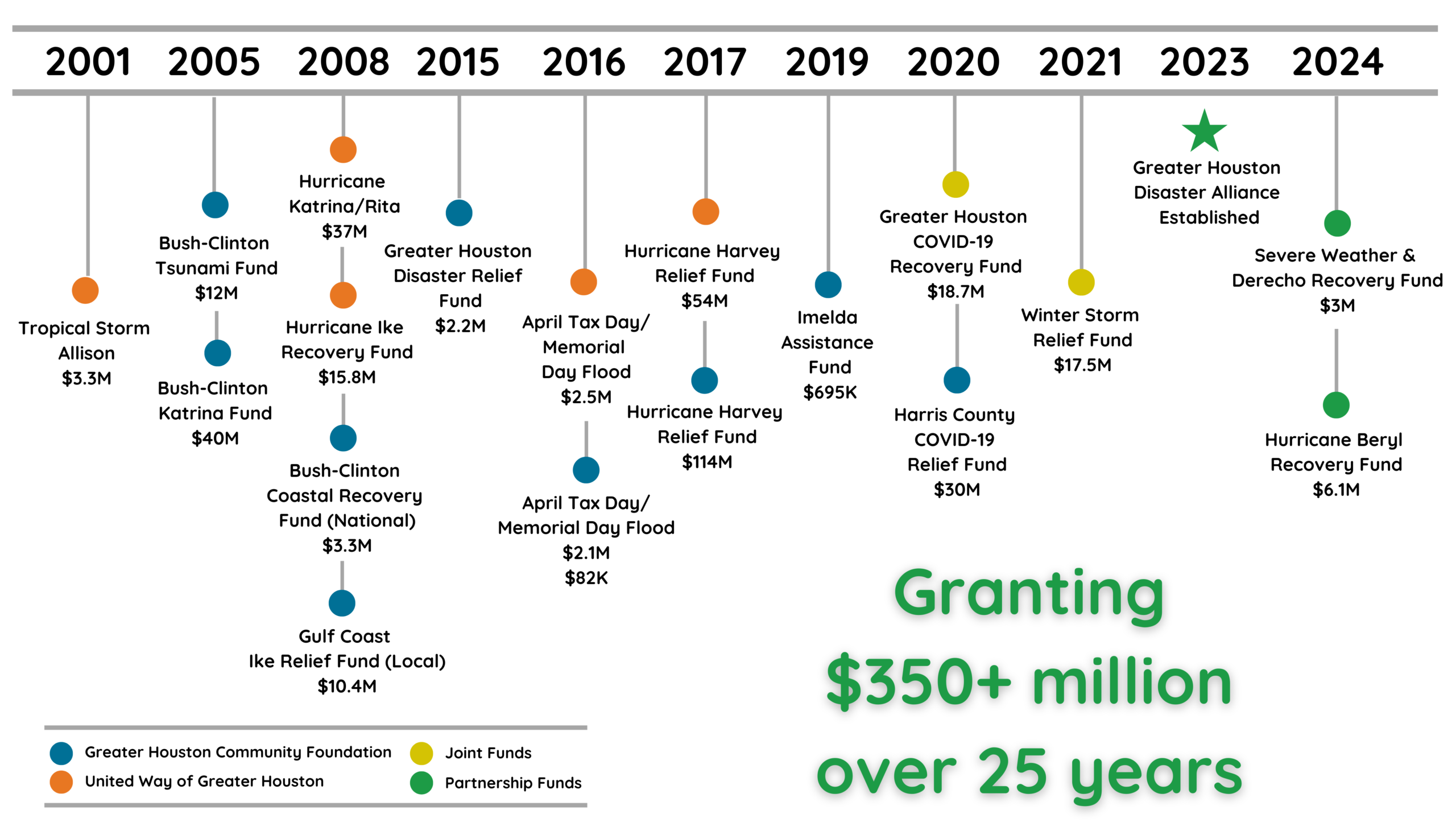 The following funds were administered jointly by United Way of Greater Houston and Greater Houston Community Foundation which laid the groundwork in establishing the Greater Houston Disaster Alliance in 2023. Learn more about our journey to establishing this formal partnership here.
